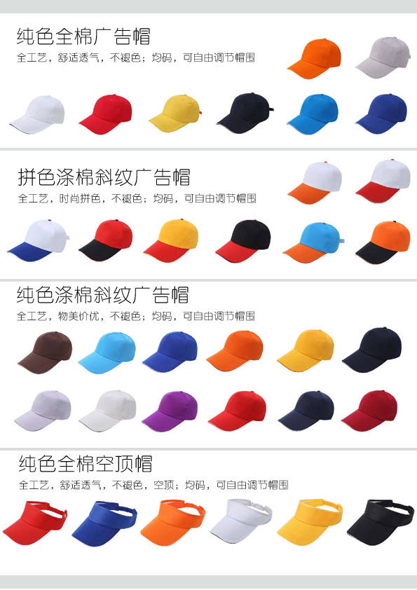 廣告帽訂制,可以把您的創(chuàng)意,圖案印制到帽面上,可印前面、后面、側(cè)面,圖像逼真清晰,是佳節(jié)慶典、廣告促銷之最佳禮品。
