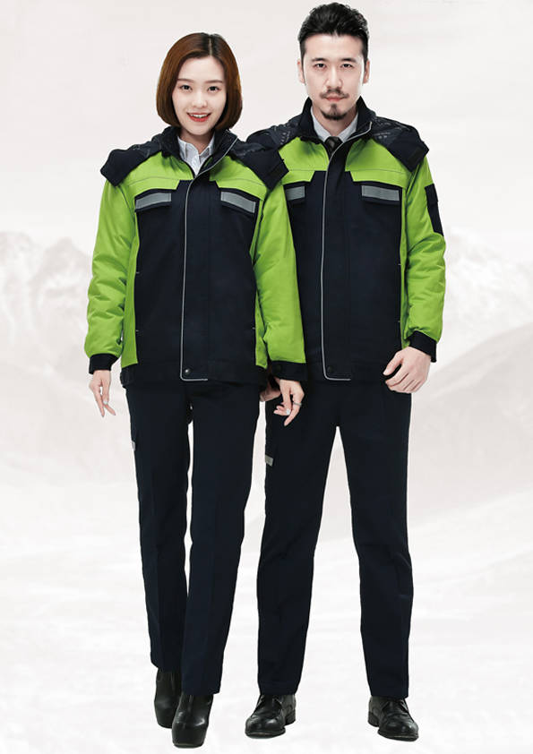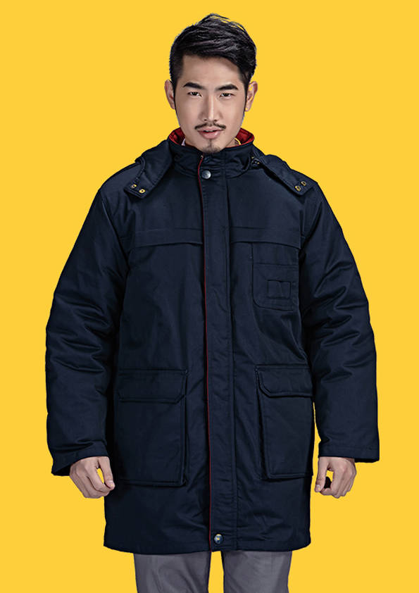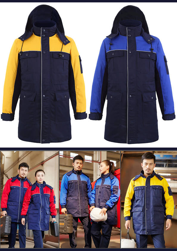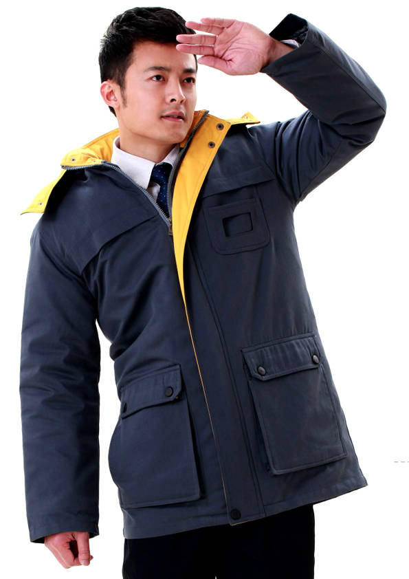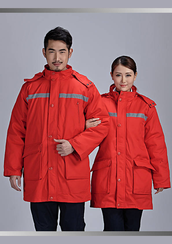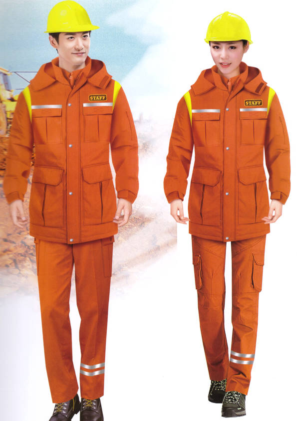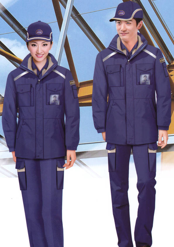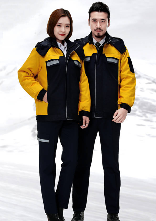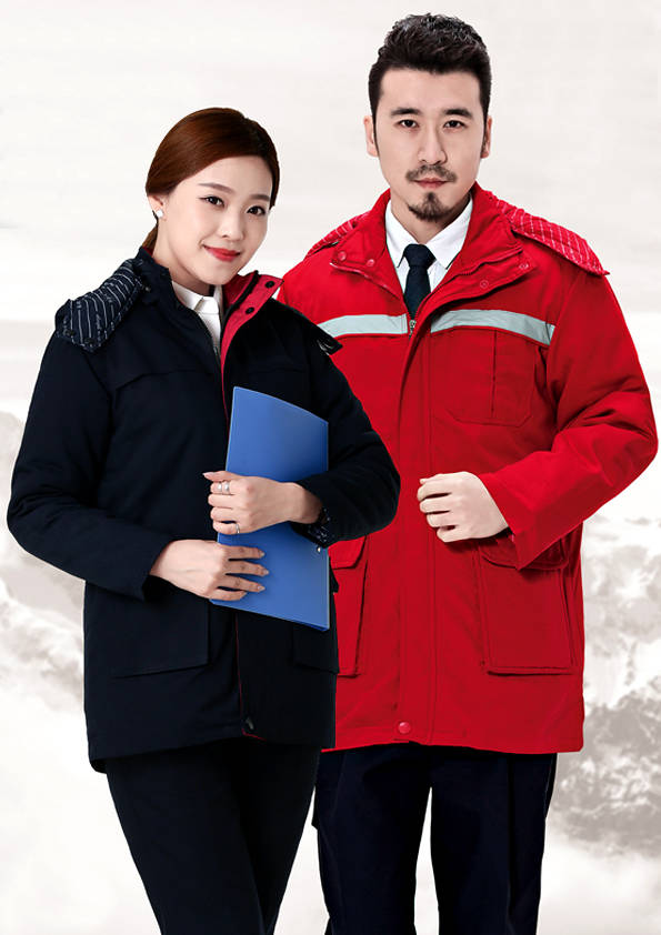 外觀同工裝外形大致相同,不同的是里襯以棉花、羽絨等物料為填充制作而成,主要是為工作需要而特制的服裝。服裝外部(外觀)結合職業(yè)特征、團隊文化、年齡結構、體型特征、穿著習慣等,從服裝的色彩、面料、款式、造型、搭配等多方面考慮;內部(里襯)用于在工作環(huán)境寒冷的情況下用來防寒的用途。